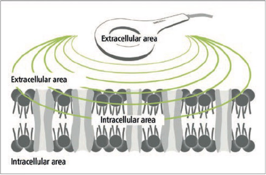 Bei der Elektroporation werden die Zellen einem kurzen, intensiven Feld (pro Puls) ausgesetzt. Dadurch öffnet sich die Zellmembran und es kommt zu einem Austausch von Wirkstoffen. Das ist möglich, da sich die Durchlässigkeit der Zellen, ihre Permeabilität, erhöht, was zu einem beschleunigten Heilungsprozeß führt (evidenzbasierte medizinische Wirkungsweise).